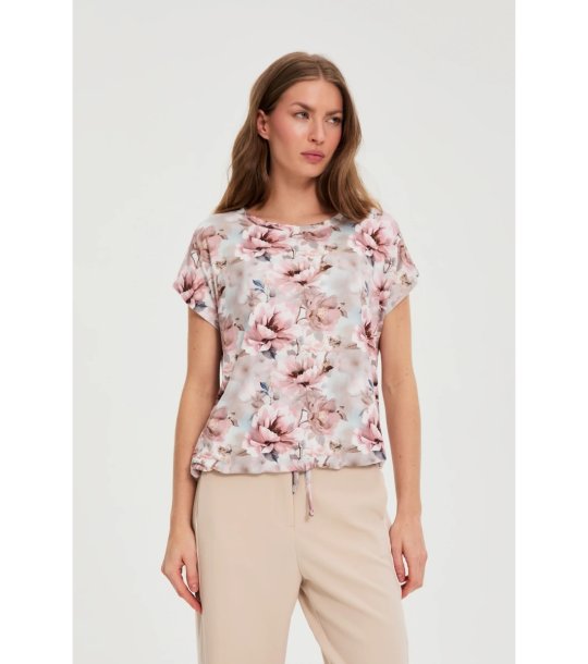 Moodo Bluză roz de damă cu imprimeu floral Decolteu rotund