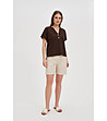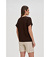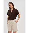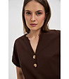 Moodo Bluză simplă maro pentru femei Decolteu în V cu nasturi