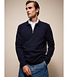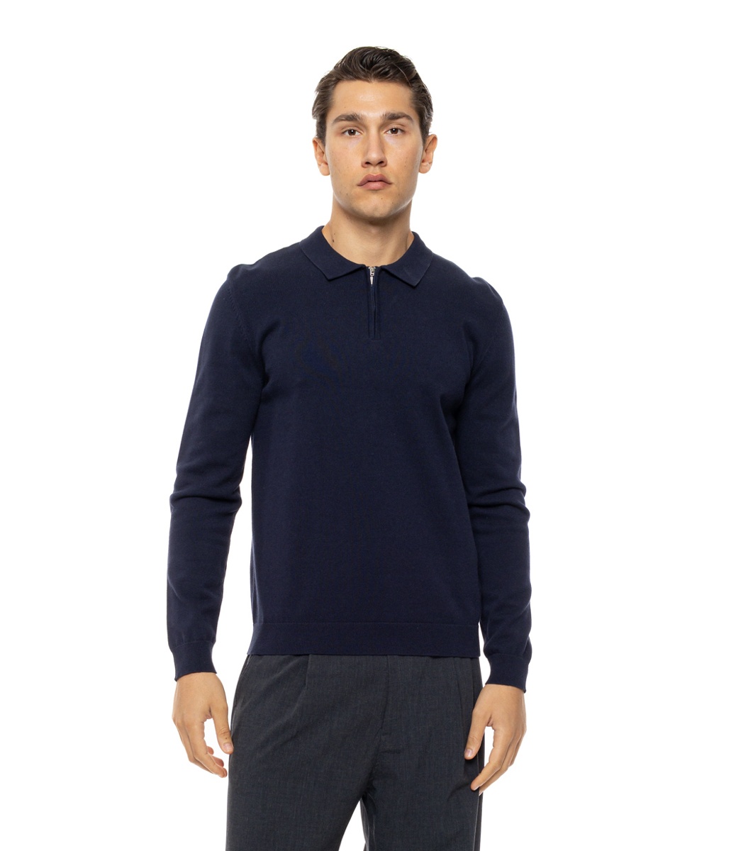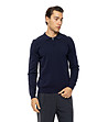 Bluză tricotată bărbătească, albastru închis, cu guler și fermoar. Negru