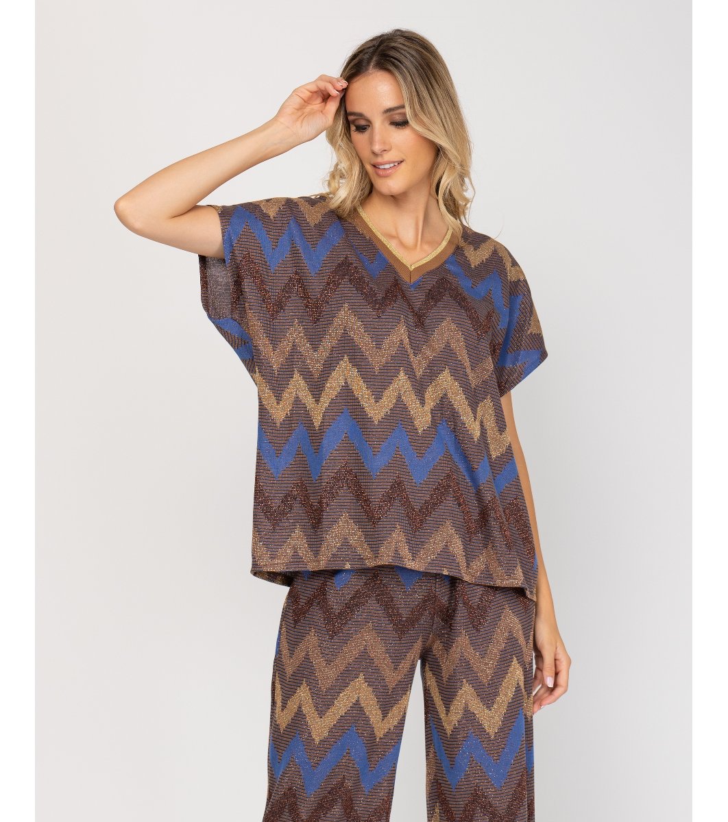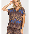 Tantra Bluză tricotată în maro și albastru Decolteu în V