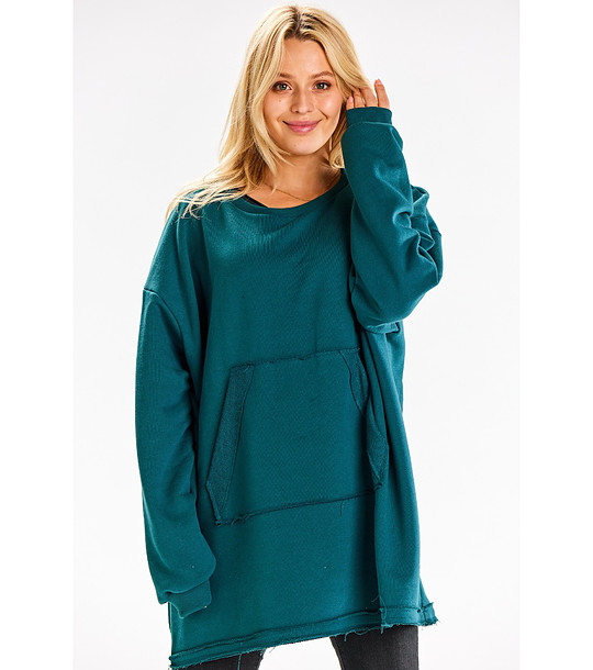 Infinite you Bluză verde din bumbac pentru femei Decolteu rotund