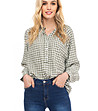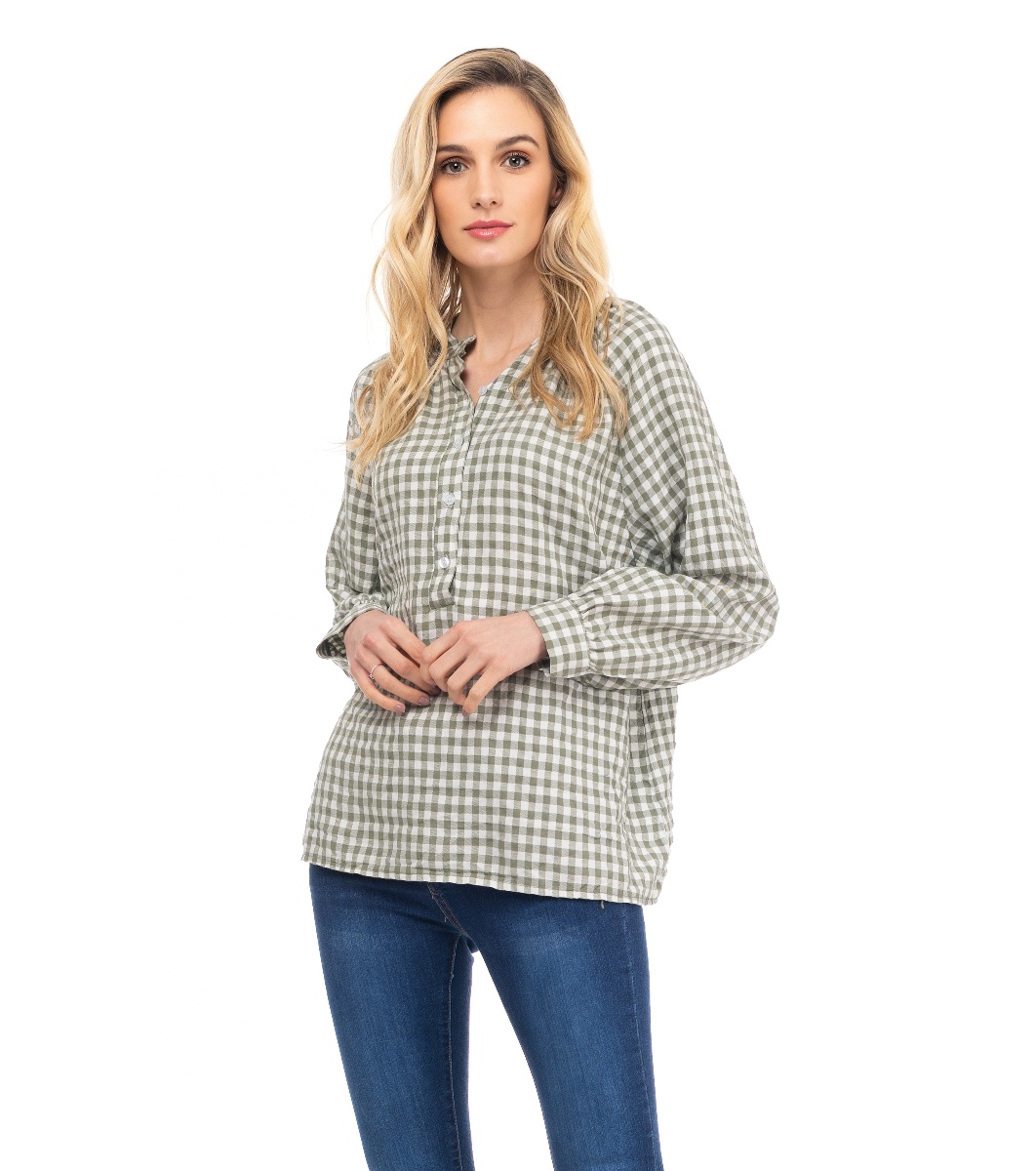 Tantra Bluză verde în carouri pentru femei Guler clasic și nasturi