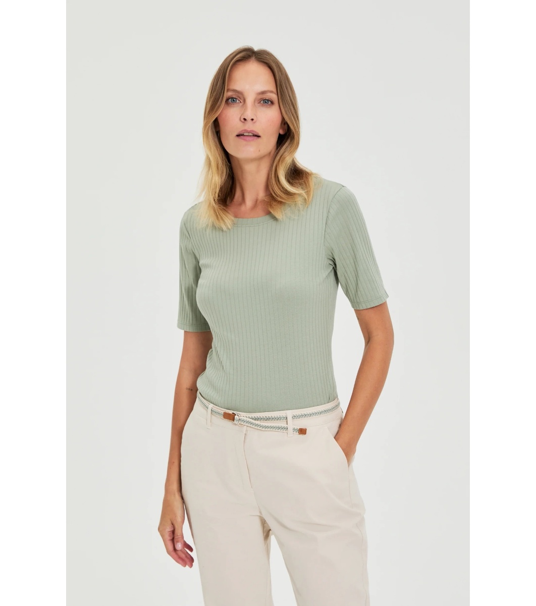 Moodo Bluză verde petrol pentru femei Decolteu rotund