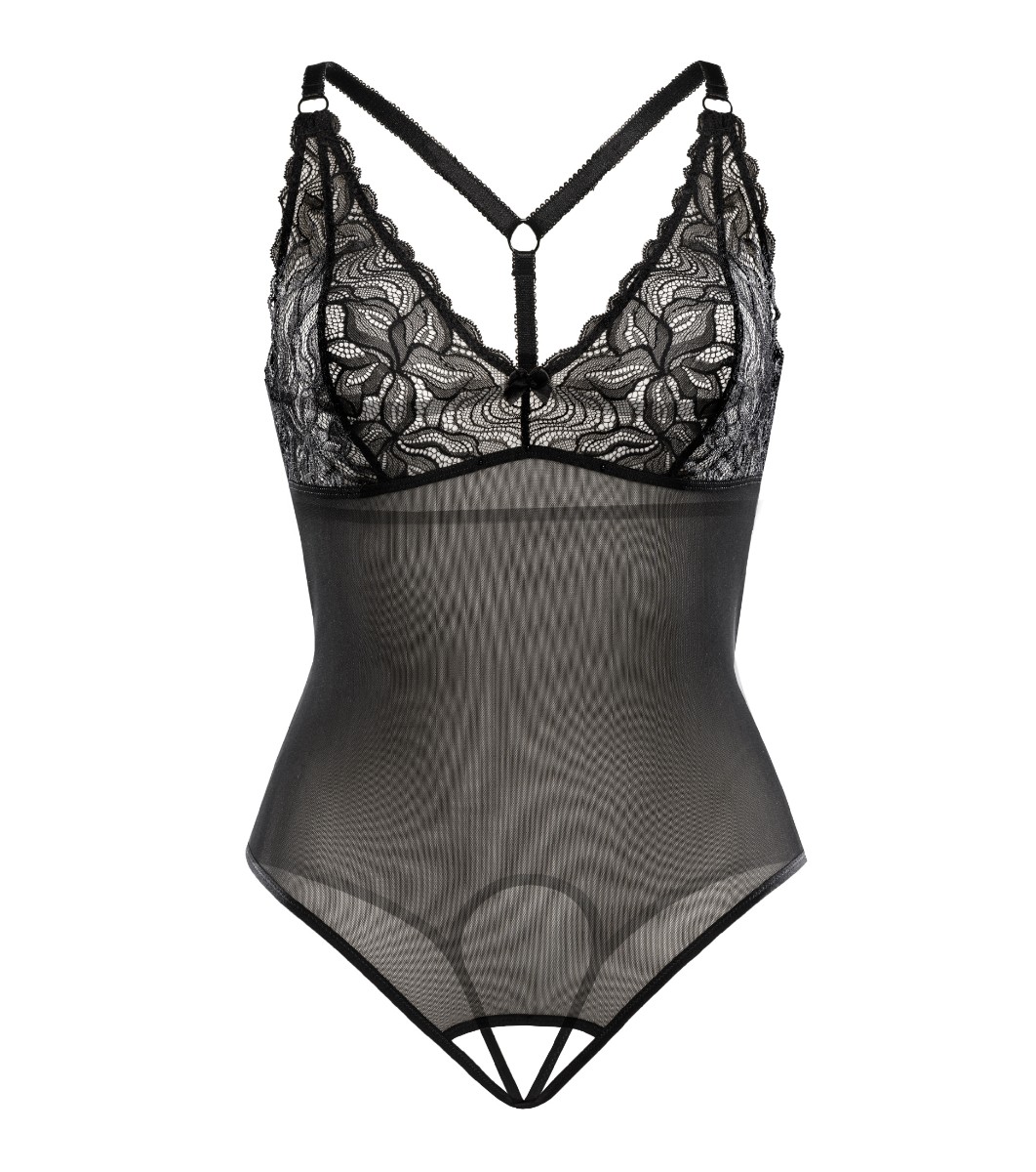 Teyli Body Vanessa din dantelă și tul negru Body-ul transparent din plasă pentru femei este o ofertă unică pentru femeile îndrăznețe care vor să se simtă speciale.