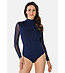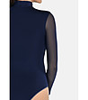 Teyli Body albastru închis cu mâneci transparente Nelly Croiala extrem de feminină se agață de siluetă, subliniind avantajele figurii.