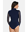 Body-ul are mâneci lungi și transparente, care adaugă farmec subtil și delicatețe.