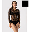 Fiore Body negru din dantelă JILL Body din dantelă elastică cu motiv floral și mâneci lungi