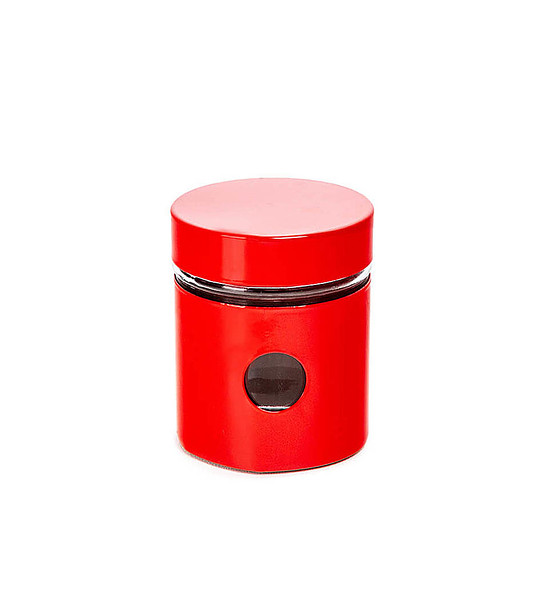 Muhler Borcan 300ml de culoare rosie Corp de sticlă cu fitinguri metalice
