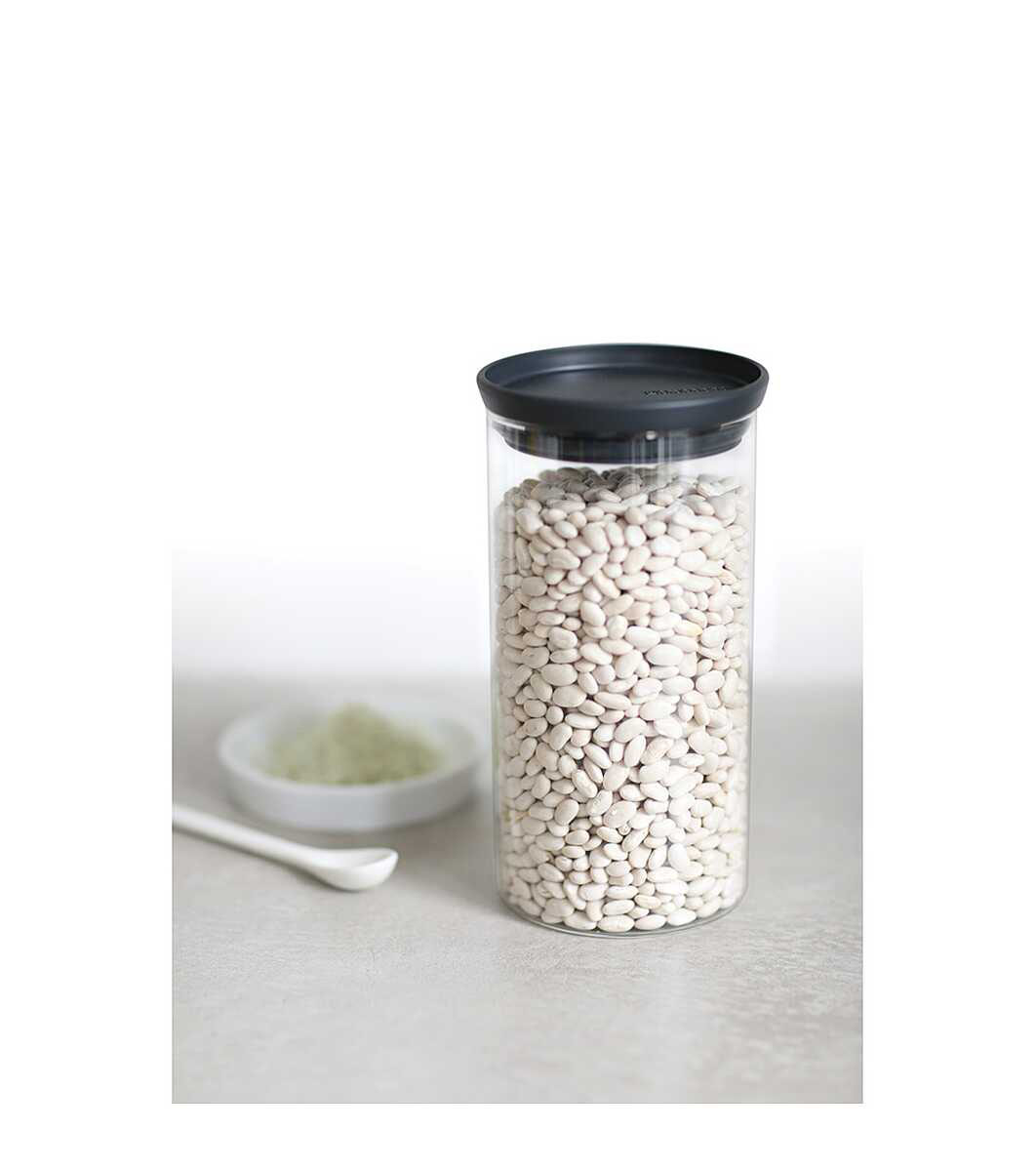 Brabantia Borcan de sticlă stivuibil 1,1 l Fabricate din material de înaltă calitate, capacele borcanelor de sticlă Brabantia se fixează etanș, iar produsele dumneavoastră sunt garantate a rămâne proaspete și protejate de mirosuri în bucătărie sau frigider.