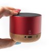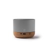 Boxă wireless fabricată din aluminiu reciclat și bază din plută, combinând designul elegant cu durabilitatea.