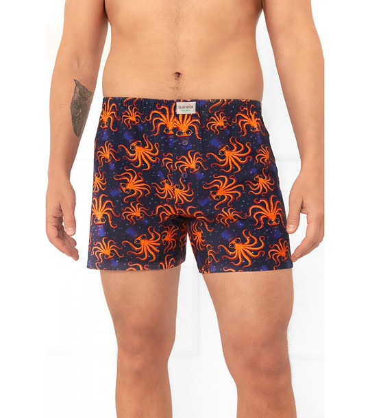 Italian Fashion Boxer bărbătesc multicolor din bumbac cu nasturi Oskar Boxer bărbătesc cu motiv contrastant, umoristic, cu caracatiță