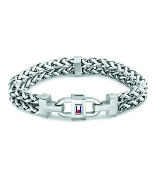 Tommy Hilfiger Brățară Tommy Hilfiger argintie din oțel inoxidabil pentru bărbați Brățară bărbătească