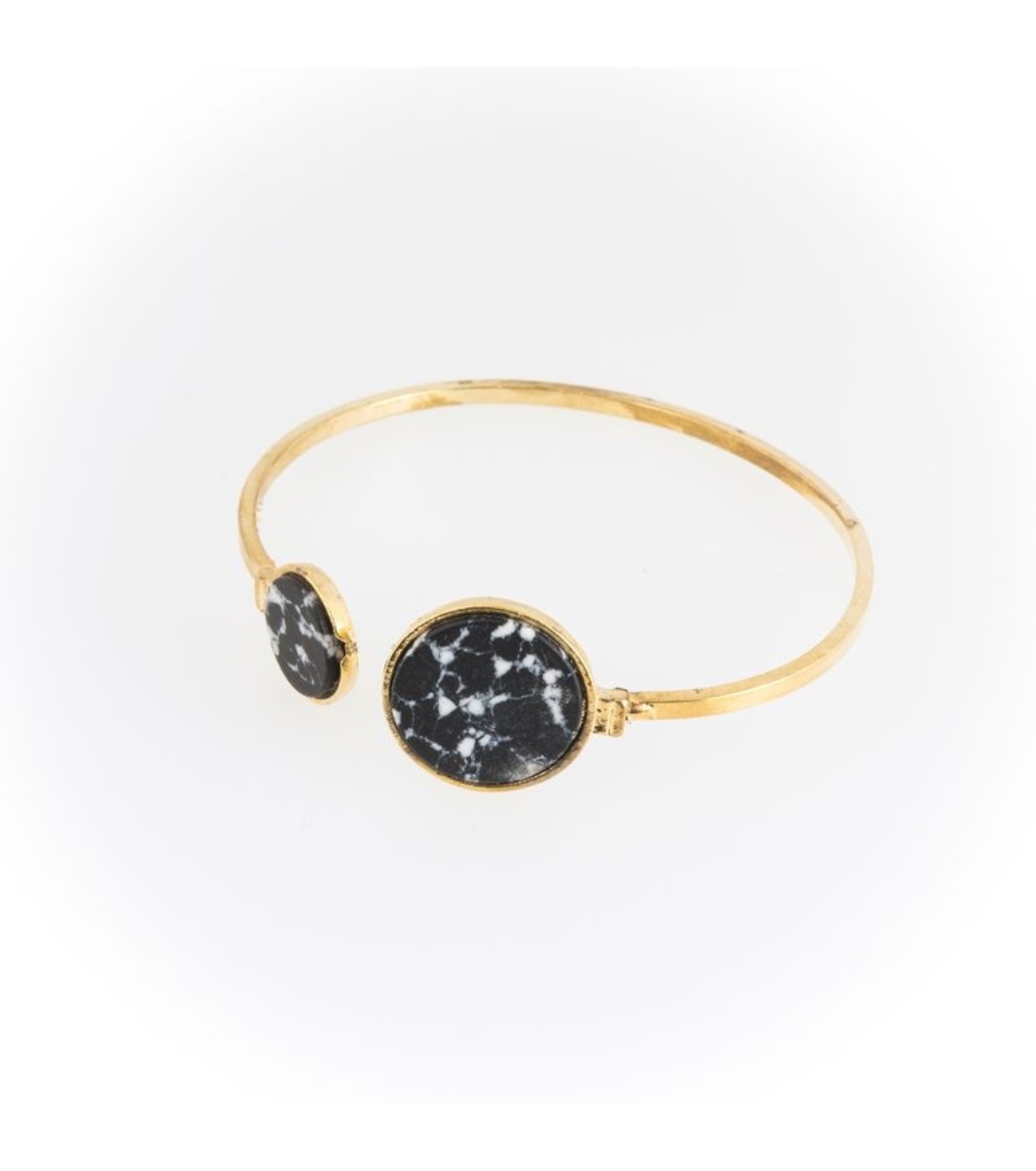 O brățară solidă, cu pietre negre la ambele capete. Lungime reglabilă