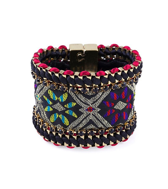 Brățară combinată colorată din textile, mărgele și lanțuri