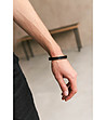Brățară bărbătească argintie cu ornamente din piele neagră Simon