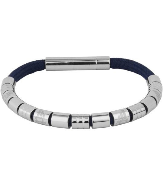Brățară bărbătească elegantă cu elemente cilindrice, care combină stilul și caracterul practic.