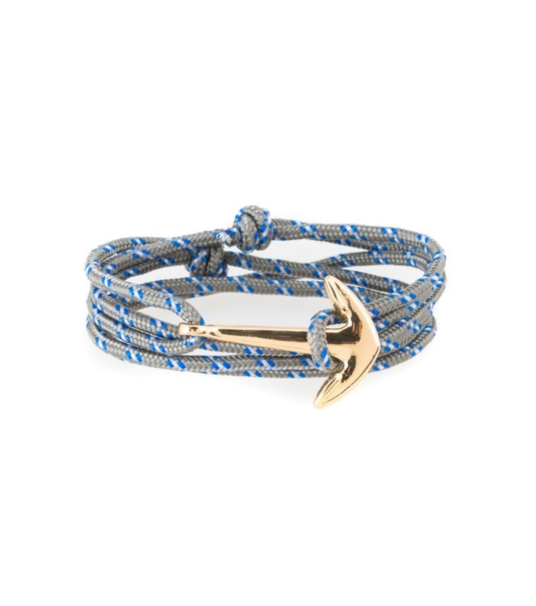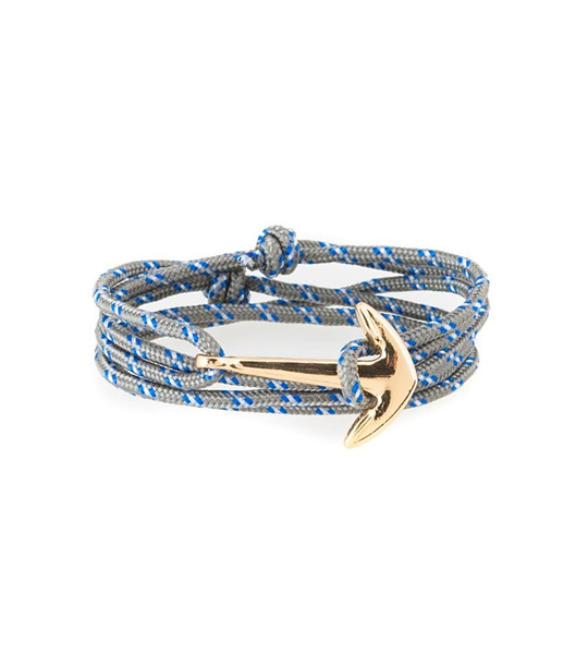 Brățară bărbătească gri și albastră cu ancoră aurie