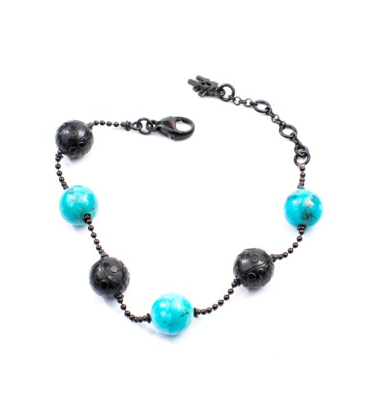 Brățară elegantă pentru femei cu mărgele rotunde și încuietoare tip carabină.