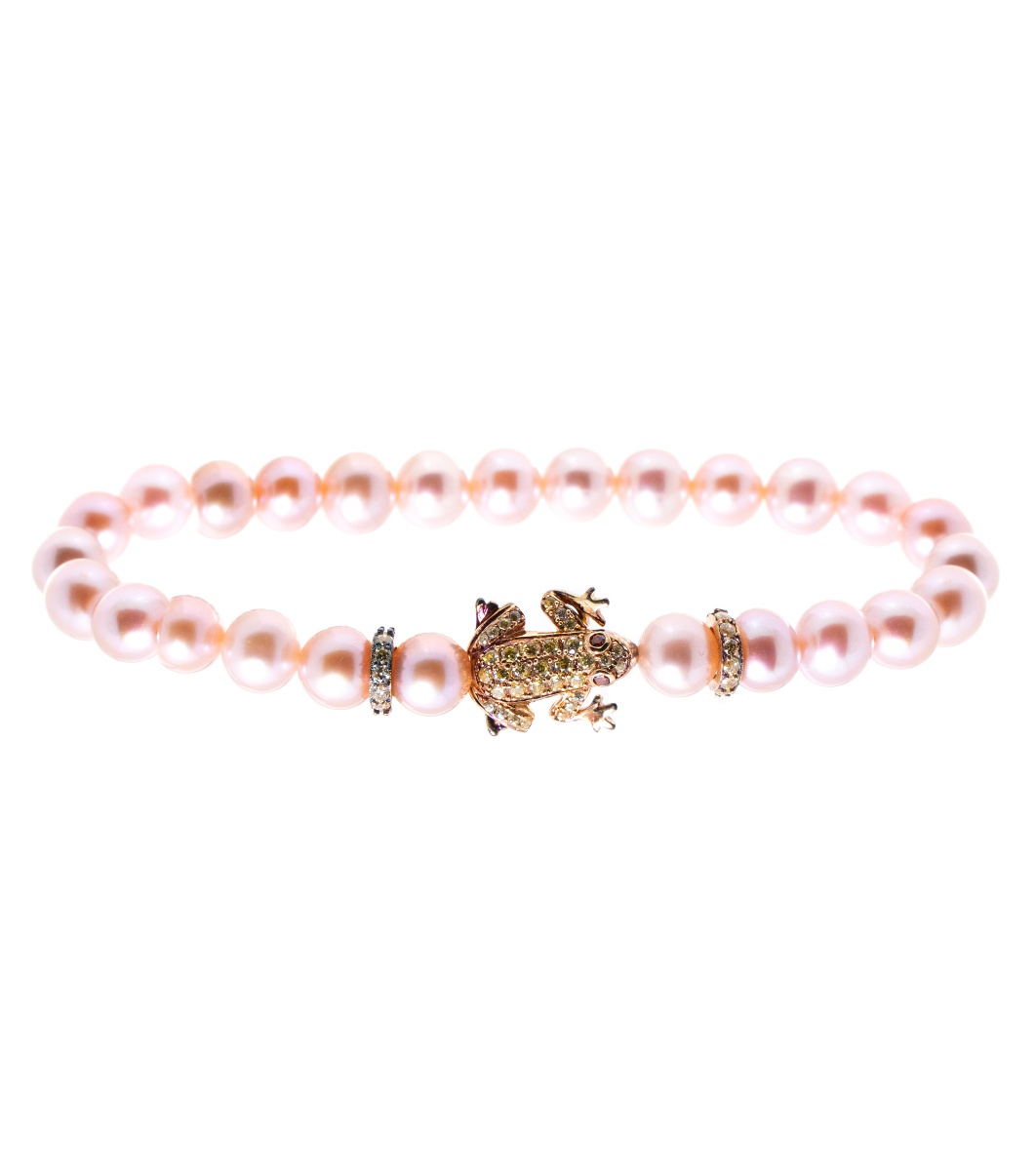 Brățară elegantă de damă cu broască decorativă și perle. Design modern, potrivită pentru diverse ocazii.