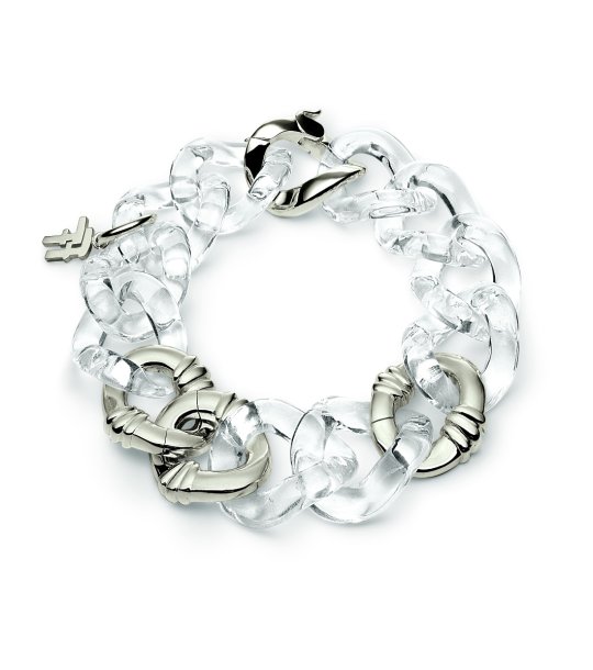 Brățară elegantă cu un design interesant, combinând zale masive cu accente metalice decorative. Potrivită pentru diverse ocazii.
