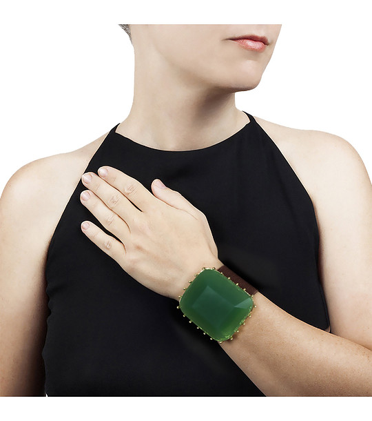 Sidartha Brățară de damă cu piatră verde Brățară elastică cu piatră decorativă maro