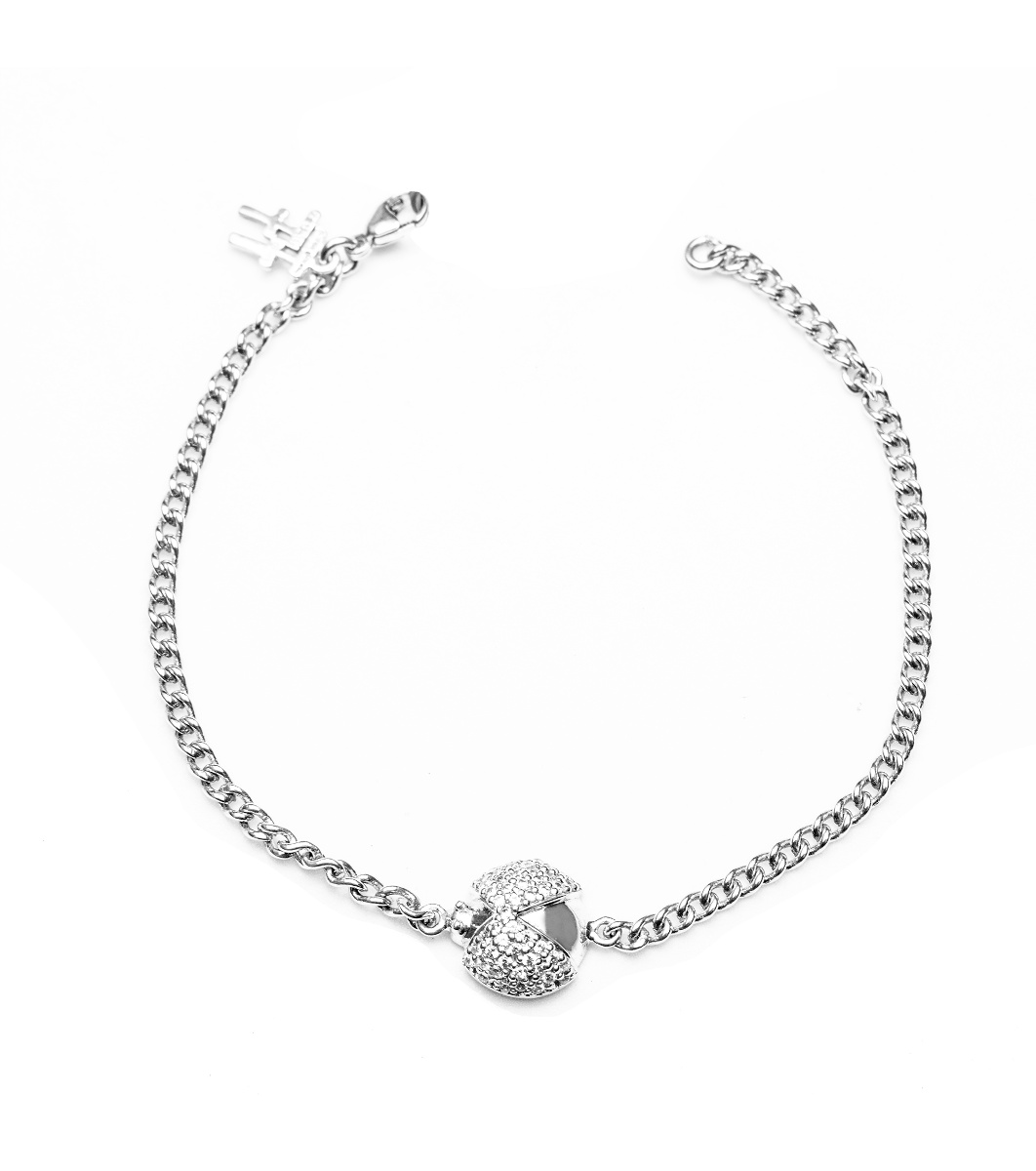 O brățară sofisticată de damă cu un lanț delicat. Include un pandantiv decorativ în centru, fixat cu o carabinieră mică. Potrivită pentru diverse ocazii și stiluri.
