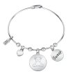 Brățară cu încuietoare delicată și pandantive decorative.