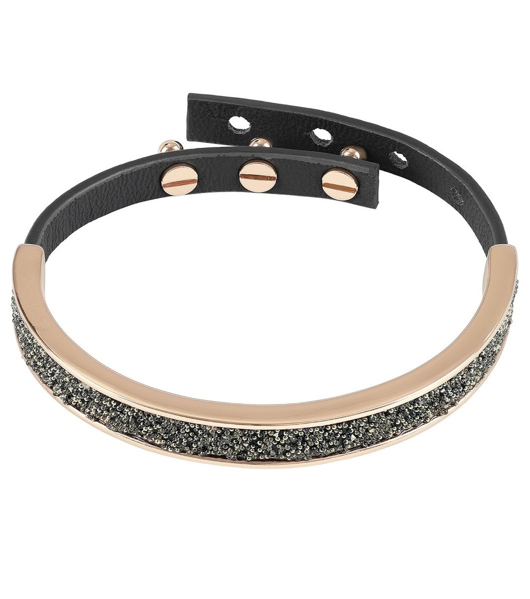 Brățară elegantă cu bandă strălucitoare și elemente metalice.