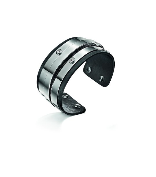 Brățara are un design elegant și include elemente metalice care îi conferă un aspect modern.