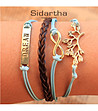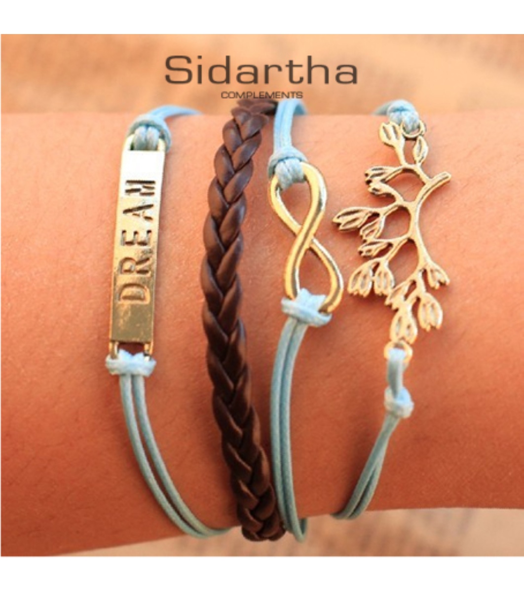Sidartha Brățară de damă în culorile albastru deschis, maro și auriu Brățară spectaculoasă din piele și șnur cu elemente metalice cu cristale