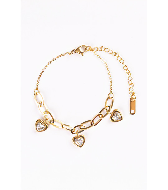 Brățară de damă placată cu aur, cu inimioare și cristale