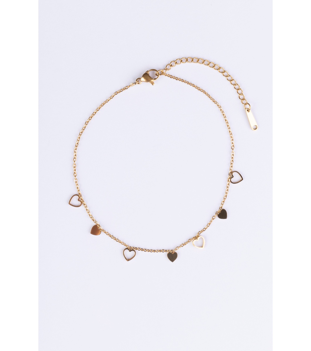 Brățară de gleznă din aur cu pandantive în formă de inimă