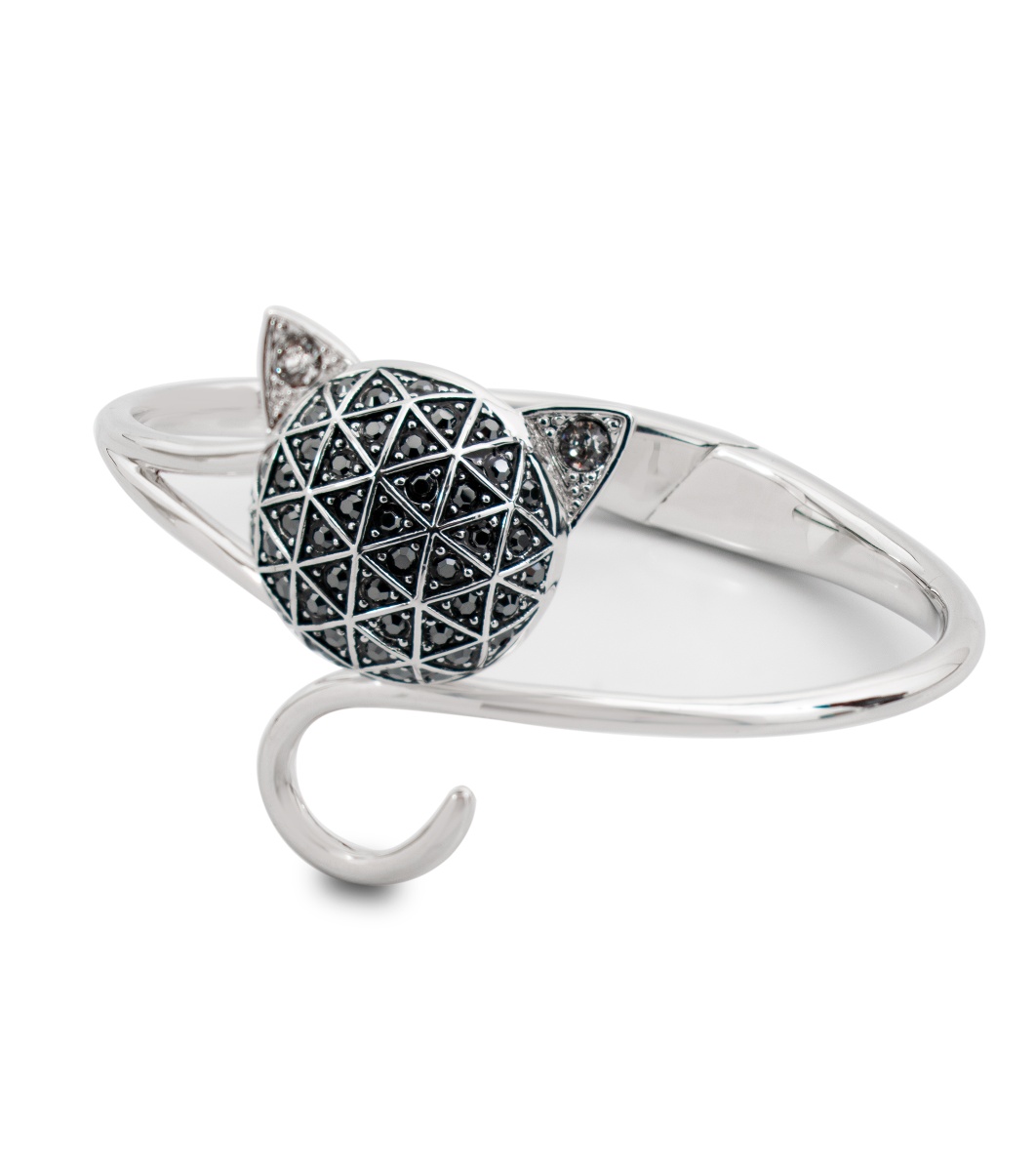 Brățară elegantă cu un design expresiv inspirat de motivul unei pisici. Accentul unic conferă un aspect artistic.
