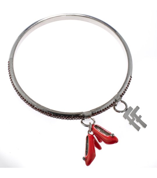 Această brățară are un design subtil și include elemente decorative care atârnă liber.
