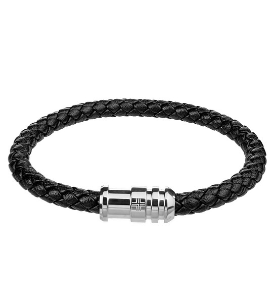 Brățară din piele bărbătească neagră cu clemă argintie Noah