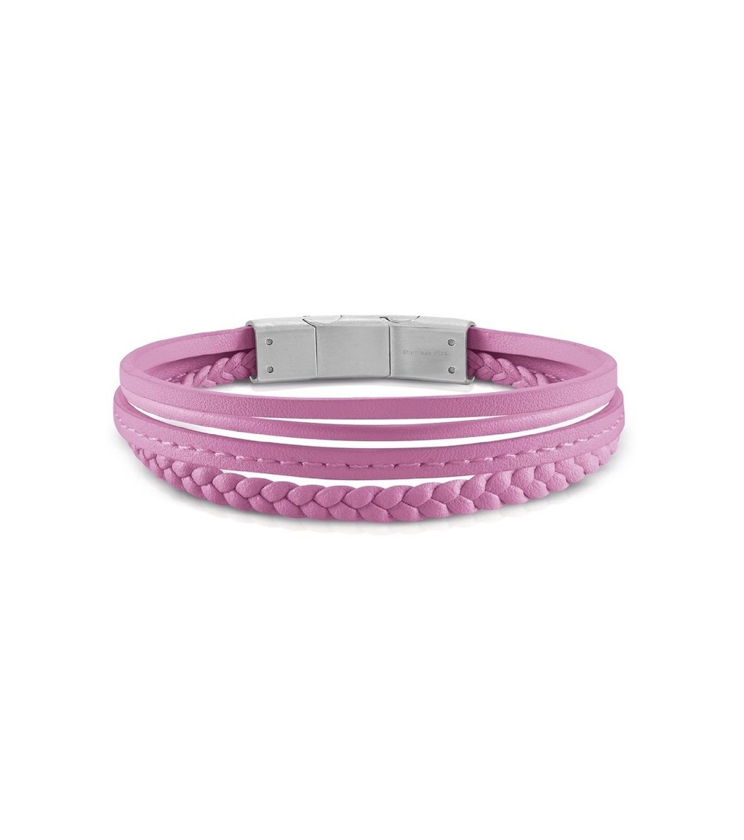 Brățară din piele roz cu detalii împletite Guess MALIBU