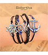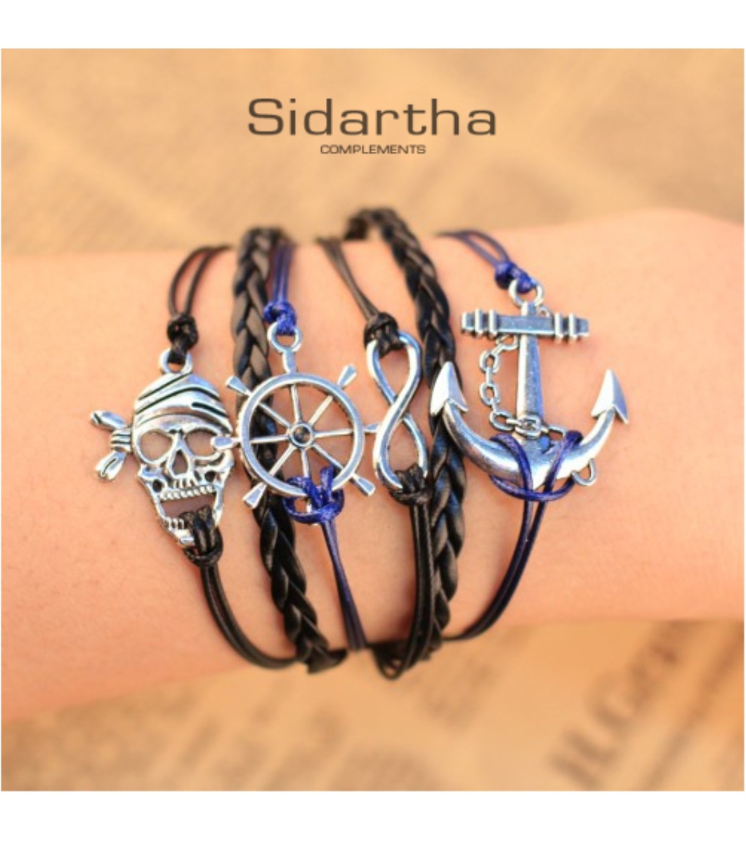 Sidartha Brățară neagră de damă cu motive marine Brățară spectaculoasă din piele și șnur cu elemente metalice