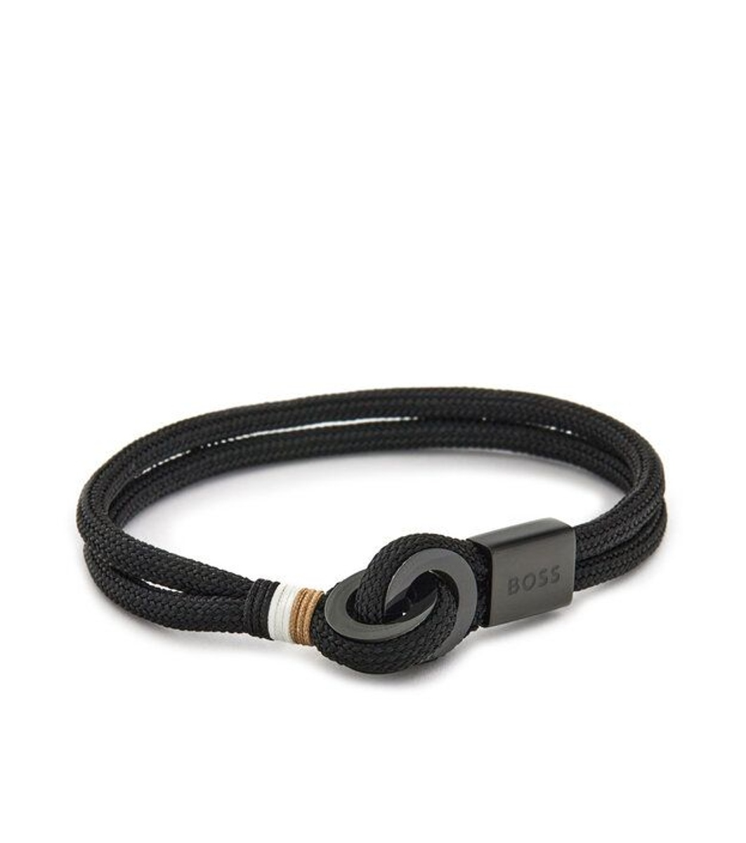 Boss Brățară neagră pentru bărbați cu închidere magnetică BOSS Brățară bărbătească din șnur textil