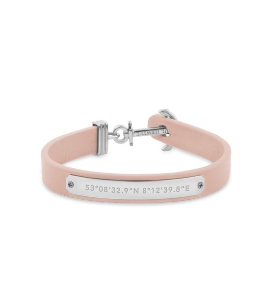 Brățară elegantă cu un design curat și o placă metalică cu coordonate gravate. Închizătoarea are un mecanism original, conferind produsului unicitate.