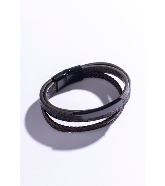 Brățară cu mai multe curele din piele și detalii metalice