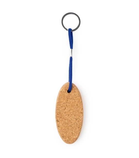 Breloc oval plutitor din plută naturală cu frânghie durabilă din poliester.