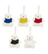 Breloc cu ursuleț de pluș și tricou colorat, confecționat din poliester moale.