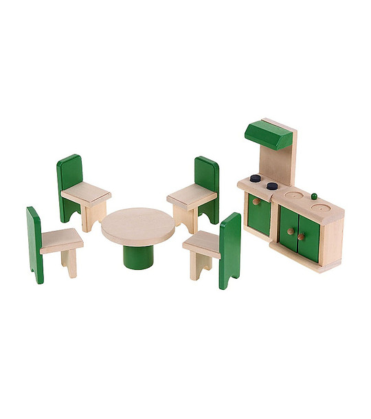 - mobilier de bucatarie si sufragerie din lemn colorat si natural