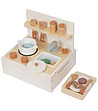Oferiți-le micilor bucătari ore nesfârșite de distracție și imaginație cu Bucătăria de Masă din Lemn TJ754 de la Tooky Toy! Acest set de bucătărie compact, dar complet echipat, este conceput pentru a imita o bucătărie reală și permite copiilor să taie, să amestece, să gătească și să servească exact ca adulții. Setul include 19 elemente, inclusiv: placă de gătit realistă; chiuvetă și blat din lemn; ustensile de bucătărie: lingură, cratiță, tocător; set de borcane cu condimente.