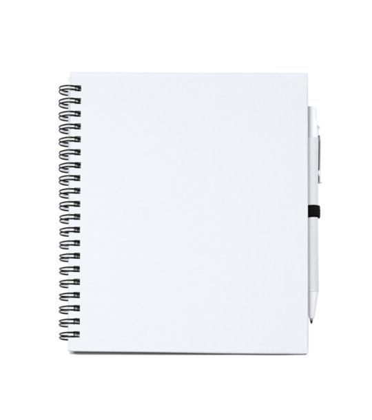 Caiet cu spirală, coperți albe și pix LEYNAX