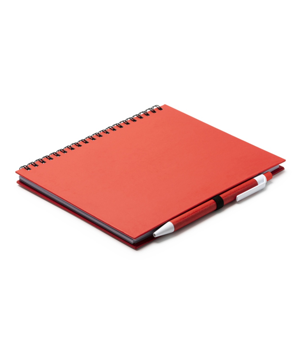 Caiet cu spirală, coperți roșii și pix LEYNAX