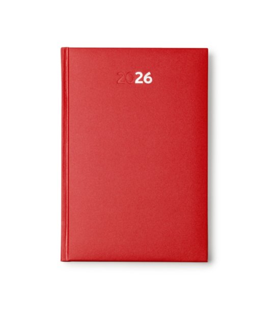 Stamina Caiet planificator pentru 2026 în roșu DIARY Agenda A5 din hârtie reciclată cu copertă căptușită din poliuretan, gravată cu basorelief.