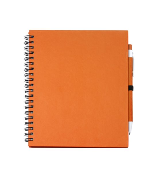 Caiet spiralat, coperți portocalii și pix LEYNAX