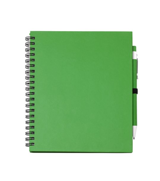 Caiet spiralat, coperți verzi și pix LEYNAX