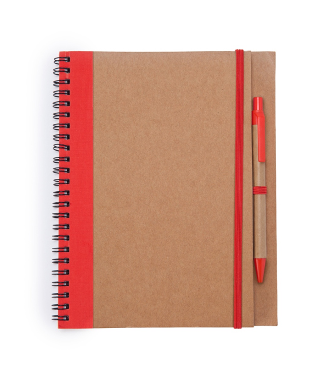Caiet spiralat cu coperți rigide bej și roșii ALANI